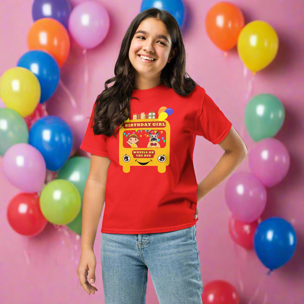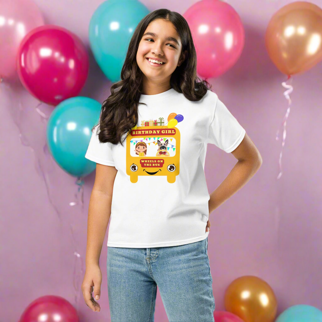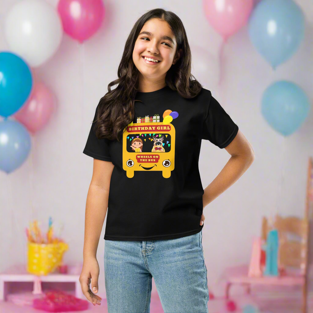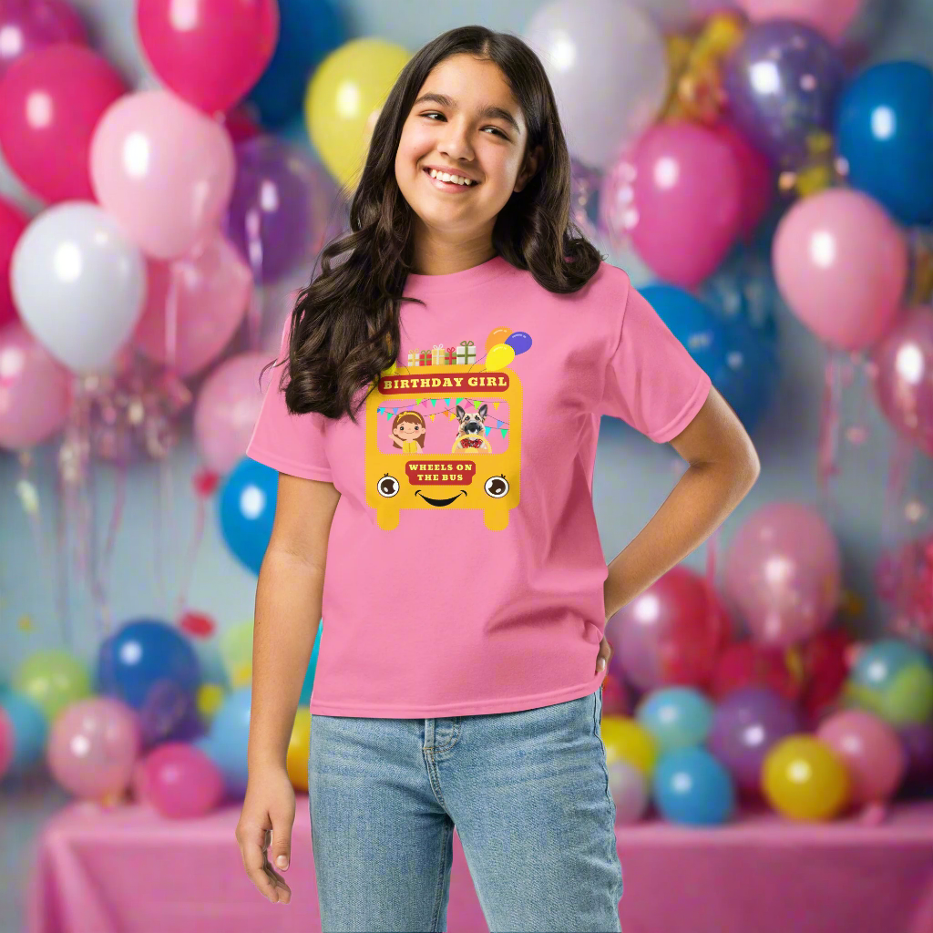 Fun, comfy, and birthday-ready! This Birthday Girl Tee features a cute German Shepherd riding a bus — perfect for dog-loving kids who love to stand out. Soft, durable, and made for adventure!